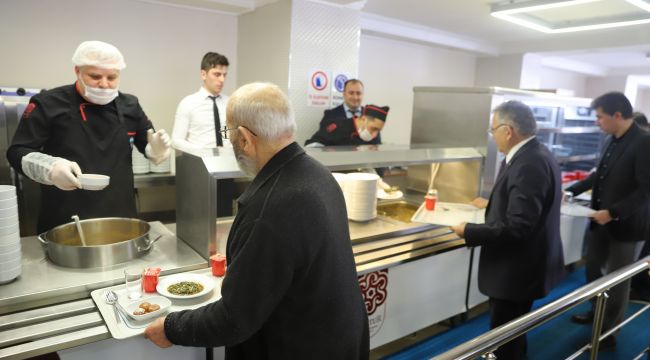 Başkan Memduh Büyükkılıç ve Hayırsever Osman Ulubaş, Büyükşehir Belediyesi Yemekhanesinde sıraya girerek yemeklerini kendileri aldı. Tavuk çorba, ıspanak, yoğurt ve tatlıdan oluşan mönü için aşçılara teşekkür eden Başkan Memduh Büyükkılıç ve Hayırsever Osman Ulubaş, yemekhanedeki personele de afiyet olsun dileklerinde bulundular.