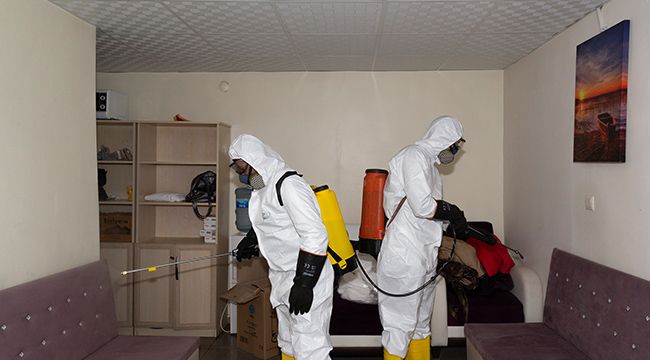 Büyükşehir Belediye Başkanı Dr. Memduh Büyükkılıç, virüs ve mikroplara karşı düzenli olarak yürüttükleri temizlik ve dezenfeksiyon çalışmalarını koronavirüs önlemleri çerçevesinde vatandaşların yoğun bir şekilde kullandıkları tüm alanlara yaydıklarını belirtti. Umreden gelenlerin geçici barınma merkezi olan Hunat Hatun Yurdu’nda da dezenfekte çalışmaları gerçekleştirdiklerini dile getiren Başkan Memduh Büyükkılıç, “Büyükşehir Belediyemizin ekipleri tarafından ULV cihazı ve pulverizatörlerle insan sağlına hiç bir etkisi bulunmayan yüksek etkili dezenfektanlar kullanılarak Hunat Hatun Yurdumuzun bütün yüzeylerinde dezenfeksiyon işlemi gerçekleştirilmiştir” dedi.