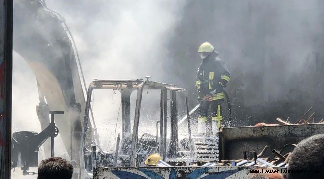 Kayseri'nin Kocasinan ilçesinde bir hurdalıkta çıkan yangında içeride bulunan iş makinesi ve kamyonet kullanılamaz hale geldi.