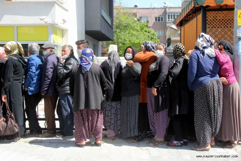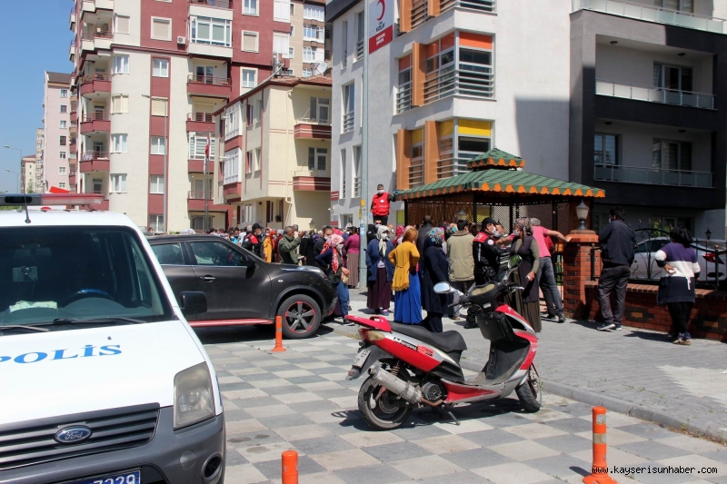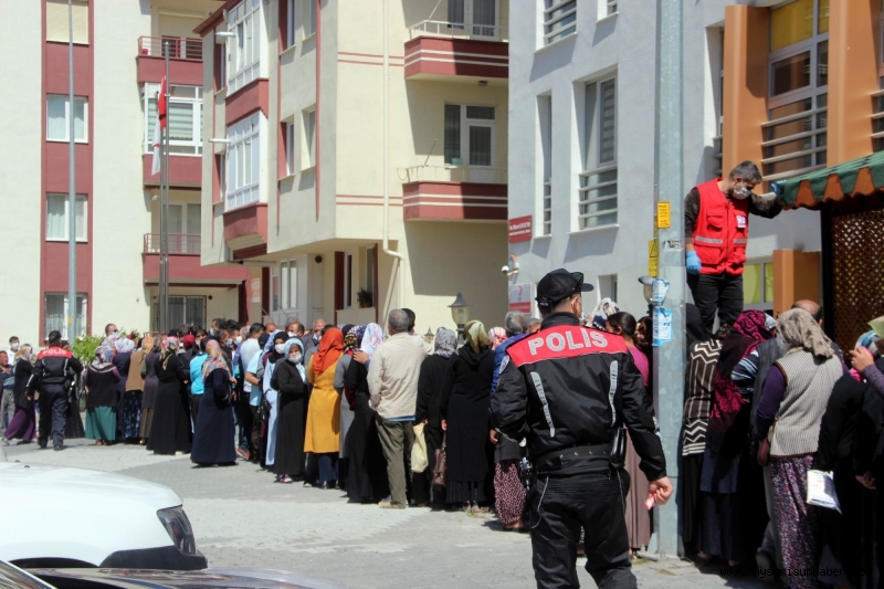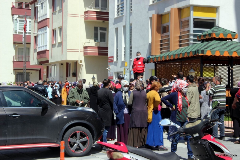 Kayseri'de Kızılay tarafından yapılacak olan iaşe yardımını duyan vatandaşlar, bina önünde yoğunluk oluşturdu. Sosyal mesafe ve maske kurallarına uymayan vatandaşları polis dağıttı.