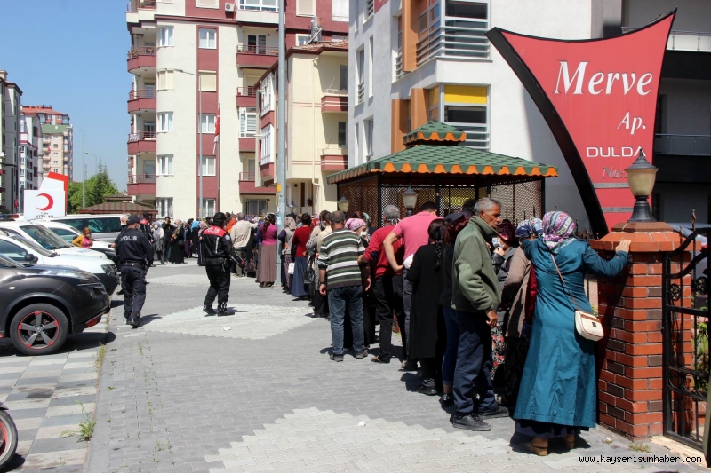 Edinilen bilgiye göre, Kızılay Kayseri Şubesi'nce Ramazan ayı dolayısıyla yapılan iaşe yardımını duyan vatandaşlar, kolilerden alabilmek için sabahın erken saatlerinde yardımını dağıtılacağı yerde beklemeye başladı. Ülkemizde Covid-19 salgınının önüne geçebilmek amacıyla alınan tedbirlerden olan sosyal mesafe ve maske kullanımına uymayan vatandaşlar, metrelerce uzunlukta kuyruk oluşturdu. Vatandaşların sosyal mesafe kurallarına uymadığının bildirilmesi üzerine bölgeye çok sayıda polis ekibi sevk edildi. Polis ekipleri vatandaşların sosyal mesafeye uymaları konusunda uyarılarda bulundu. Anonslarla da uyarılan vatandaşlar düzenli şekilde sıraya girmedi. Kızılay yetkilileriyle de görüşen polis ekipleri, vatandaşın korona virüs tedbirlerine uymayacağını anlaması üzerine vatandaşları dağıttı. Polis vatandaşlara, yardımların Kızılay tarafından evlerine dağıtılacağını söyledi.