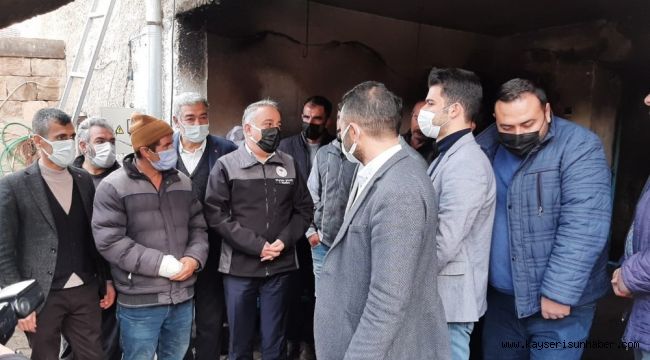 İl Tarım ve Orman Müdürü Mustafa Şahin, Kayseri'nin Tomarza ilçesine bağlı Kapukaya Mahallesi'nde ahırda çıkan yangında 12 büyükbaş hayvanı telef olan Ersoy Doğan'ı ziyaret etti.