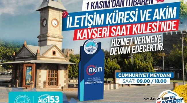 Kayseri Büyükşehir Belediyesi Basın Yayın ve Halkla İlişkiler Daire Başkanlığı tarafından Cumhuriyet Meydanı'na kurulan Büyükşehir İletişim Küresi, 1 Kasım itibariyle Kayseri Saat Kulesi'nde hizmet vermeye başladı.
