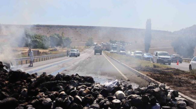 İplik yüklü tır cayır cayır yandı, kilometrelerce araç kuyruğu oldu