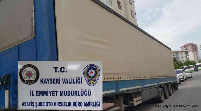Polis ekipleri tarafından yapılan çalışmalarda İstanbul'da çalındığı tespit edilen 500 bin TL değerindeki tır römorku Kayseri'de bulundu.