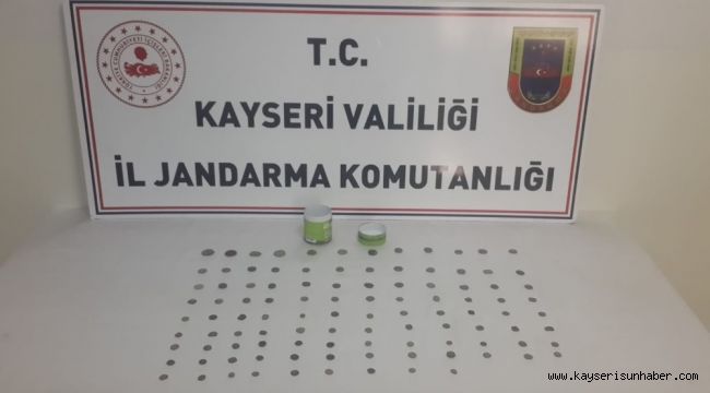 Kayseri'de jandarma ekiplerinin yaptığı tarihi eser operasyonunda 105 adet Bizans ve Roma dönemine ait sikke ele geçirildi.