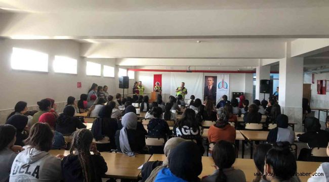 Develi'de, jandarma ekipleri tarafından 100 öğrenciye trafik semineri verildi.