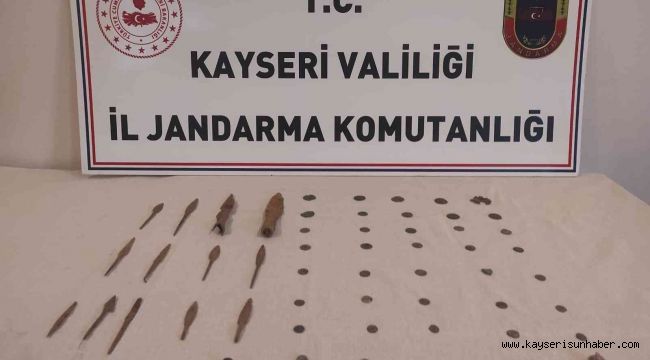 Kayseri İl Jandarma Komutanlığınca yapılan çalışmalarda Roma ve Bizans Dönemi'ne ait olduğu değerlendirilen 54 adet tarihi eser ele geçirilirken olayla ilgili 2 kişi yakalandı.