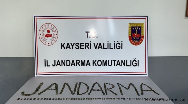 Kayseri İl Jandarma Komutanlığı ekiplerince yapılan çalışmalarda 289 adat sikke ele geçirilirken olayla ilgili 1 kişi gözaltına alındı.