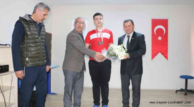 İl Müdürü Ali İhsan Kabakcı, söyleşinin akabinde okul öğrencilerinden spor müsabakalarında dereceye giren öğrencilere ödüllerini verdi.