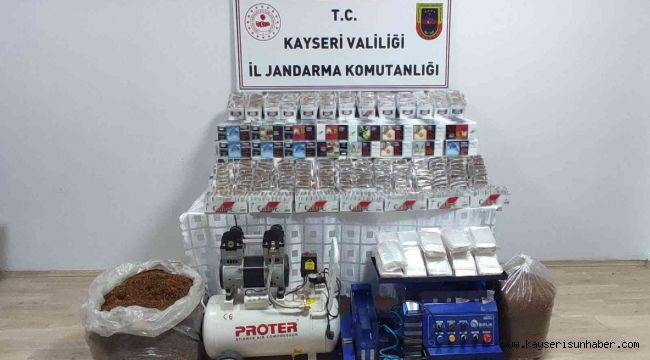 Kayseri'de jandarma ekipleri tarafından yapılan çalışmalarda, kaçak tütün ve sigara imalatı ve satışı yapan bir kişi yakalandı.