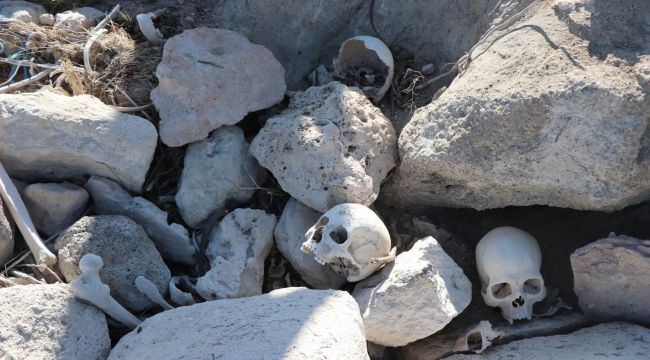 Kayseri’nin Kocasinan ilçesinde Yamula Barajı’na kıyısı bulunan Taşhan mahallesinde sularının çekilmesiyle ortaya çıkan mezarlıklardaki iskelet ve kafatasları Kocasinan Belediyesi ekipleri tarafından toplanarak mezarlığa defnedildi.