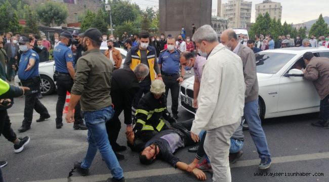 Kayseri'de eski eşine nafakasını ödeyemediğini iddia eden şahıs, aracının üstünde üzerine benzin dökerek kendini yakmaya çalıştı. Şahsın dikkatsizliğinden faydalanan bir polis memuru kendi canını hiçe sayarak adamı etkisiz hale getirdi.