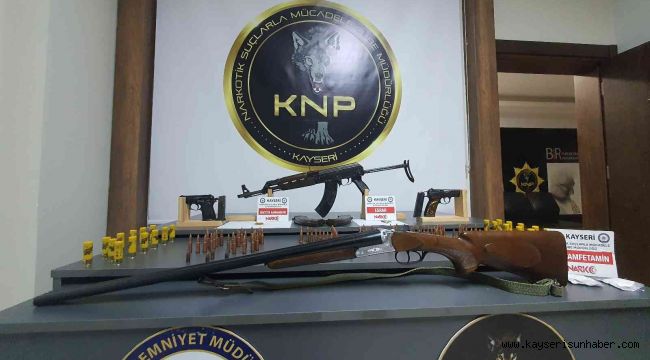 Kayseri İl Emniyet Müdürlüğü Narkotik Suçlarla Mücadele Şube Müdürlüğü ekipleri, kent merkezi, Pınarbaşı ve Sarız ilçelerinde operasyon düzenledi. Ekipler tarafından Sarız ilçesine bağlı Çavdar ve Damızlık Mezralarında düzenlenen operasyonda, şüpheli T.A.'nın evinde arama yaptı. Evin içerisinde çatı arasında bulunan bir gizli bölme tespit eden ekipler, bölmeye çıktı. Burada arama yapan ekipler, 1 adet AK-47 marka Kalaşnikof marka uzun namlulu otomatik tüfek, bu tüfeğe ait 3 adet şarjör ve 100 adet fişek, 1 adet ruhsatsız tabanca, 14 adet dolu tabanca fişeği ve 25 adet tüfek kartuşu ele geçirildi. T.A. gözaltına alınırken, ele geçirilen malzemelere de el konuldu.