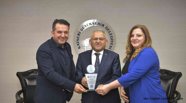 KalDer Kayseri Şube Başkanı Erkut Korkmaz, ziyaret sonrasında Başkan Büyükkılıç'a, Büyükşehir Belediyesi'nin 8. Erciyes Mükemmellik Zirvesi'ne desteklerinden dolayı plaket takdim ederek, katkılarından dolayı teşekkür etti.