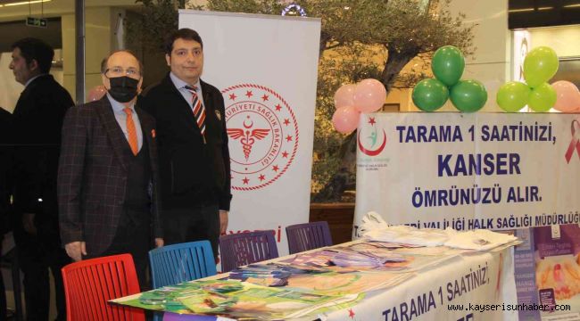Açılışına, Halk Sağlığı Hizmetleri Başkan Yardımcısı Uzm. Dr. Sadi Tacettinoğlu ve Sağlık Bilimleri Üniversitesi Kayseri Tıp Fakültesi, Genel Cerrahi Ana Bilim Dalı Öğretim Üyesi Doç. Dr. Yusuf Sevim'in katıldığı stantta görevli sağlık personeli tarafından stantı ziyaret eden vatandaşlara çeşitli bilgilendirmeler yapılarak, broşür ve eğitim materyali dağıtıldı. Açılışta açıklamalarda bulunan Kayseri Tıp Fakültesi, Genel Cerrahi Ana Bilim Dalı Öğretim Üyesi Doç. Dr. Yusuf Sevim; "Kolorektal kanseri toplumda en sık görülen 3. kanser tipidir. Bu kanserlerin çoğu kalın bağırsağın iç yüzeyinde polip olarak adlandırdığımız bir kabarıklık şeklinde başlamakta ve ortalama 7-10 yılda kansere dönmektedir. Kolorektal kanserleri Sağlık Bakanlığımızın tarama programları kapsamındadır. Tarama, hastalıkları gelişmeden önlemek, erken evrede yakalayabilmek ve başarı ile tedavi edebilmek için sağlıklı görünen bireylerin sağlık kontrolünden geçirilmesi işlemidir. Ülkemiz için önemli diğer bir sağlık sorunu olan kalın bağırsak kanserini gelişmeden önlemek ve erken evrede yakalayabilmek için tarama testlerine ihtiyaç vardır. Kolon ve rektumun, polip ve kanserleri çoğu kez iyice büyüyene kadar belirti vermezler. Tarama yöntemi, belirtisi olmayan bir hastada kolon ve rektum kanserine dönüşebilecek bir hastalık veya durumu ortaya koymak için yapılan bir veya daha fazla testi içerir. Bu tarama yöntemlerinin öncelikli amacı kanser gelişmeden önce bu parçanın bulunması ve çıkarılmasıdır. Böylece kanser gelişimi önlenmiş olacaktır. Tarama yöntemlerinin diğer önemli bir amacı ise kalın bağırsak kanser hastalığının hiç değilse erken bir evrede yakalanmasını ve tedavisini sağlamaktır. Erken evrede yakalanan kanserin tedavisi ve tamamen şifa bulması mümkündür. Günümüzde önerilen 50 yaş üzerinde bireylerin seçilen yönteme göre belli aralıklarla taranması gerekmektedir. Aile hikâyesi olanlarda ise tarama daha erken yaşlarda başlamalıdır. Ülkemizdeki tüm bireylerin, bilinen tarama yöntemleri ile sağlık taramalarının yapılması kanser vakalarında önemli bir oranda azalmaya neden olacaktır. Kanser taramalarının en önemli basamaklarından biri farkındalık çalışmalarıdır. Bu sebep ile tüm vatandaşlarımızı Kolorektal kanser için tarama davet ediyorum" dedi.