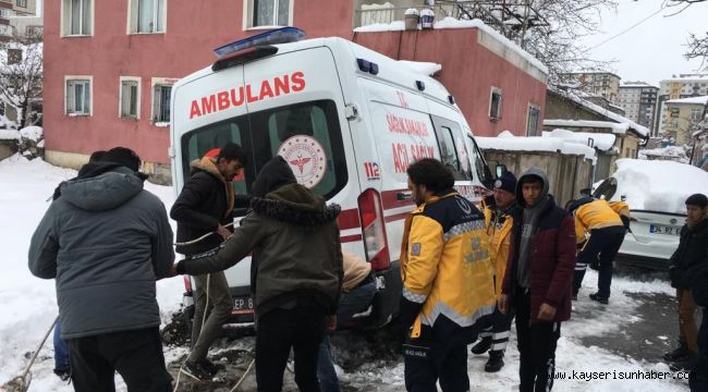Kentte gece saatlerinde başlayan ve gün boyu etkisini sürdüren kar yağışı hayatı olumsuz etkilemeye devam ediyor. Son 22 yılın Mart ayında en yoğun kar yağışını alan kentte çalışmalarını aralıksız sürdüren 112 İl Ambulans Servisi Başhekimliği'ne bağlı ekipler, hastalara ulaşmak için seferber oldu. Kar nedeniyle ulaşımın güçlükle sağlandığı Develi İlçesi'nde hastalara ulaşmak için üstün gayret sarf eden kadın ambulans görevlileri de, olumsuzluk yaşanmaması için ambulans lastiklerine zincir taktı.