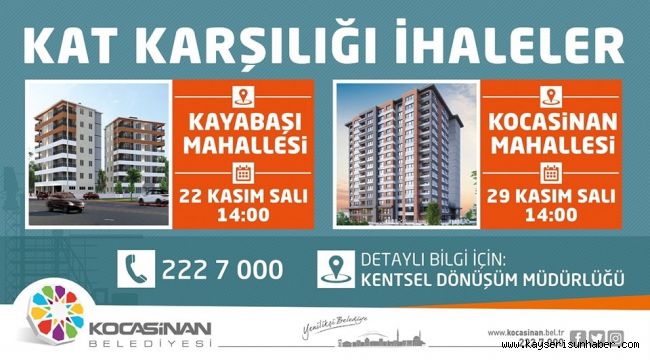 Öte yandan Kayabaşı Mahallesi için 22 Kasım Salı günü saat 14.00'de Kocasinan Mahallesi için ise 29 Kasım Salı günü saat 14.00'de gerçekleştirilecek olan kat karşılığı ihalelerin şartname ve eklerinin Kentsel Dönüşüm Müdürlüğü'nden temin edinilebileceği gibi 0(352) 222 70 00 numaralı telefondan da ayrıntılı bilgi alınabileceği kaydedildi.