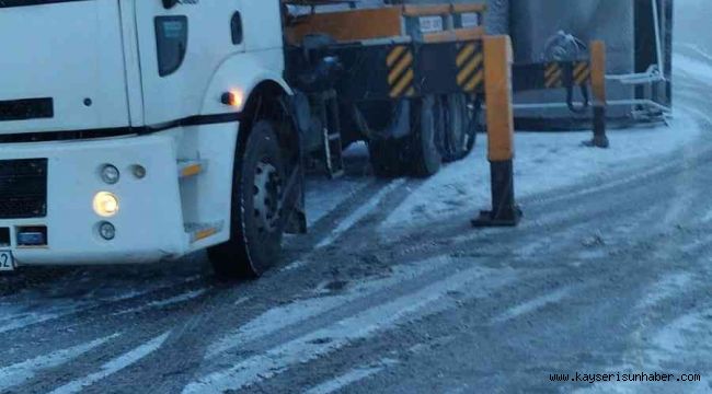 Kayseri'nin Develi ilçesinde kaygan yolda süt kamyonunun devrildiği kazada 1 kişi yaralandı.