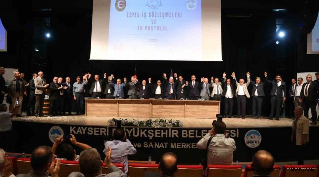 Kayseri Büyükşehir Belediyesi ve 16 ilçe belediyesinin toplu iş sözleşmeleri ve ek protokolleri imza töreni gerçekleştirildi.