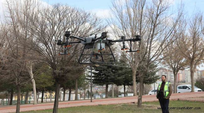Kayseri Büyükşehir'den drone ile park ilaçlama hizmeti