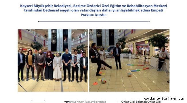 Şehirlerden haberler yer alan Türkiye Sağlıklı Kentler Birliği'nin süreli yayını 'Kentli Dergisi'nde, 'Büyükşehir'in 'Özel' Vatandaşları daha İyi Anlayabilmek İçin "Empati Parkuru" ' başlıklı haberi ile okurlarıyla buluşan dergide, Kayseri Büyükşehir Belediyesi'nin engelli vatandaşlar ile empati kurularak hareket edilmesine katkı sağladığı etkinliği örnek olarak yer aldı.