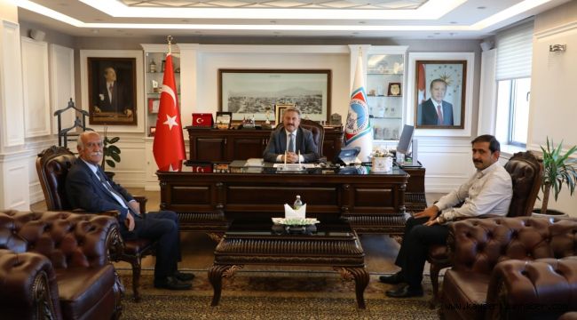 Kayseri Hacı Bektaş-ı Veli Cem Evi Başkanı Abbas Tan ve Başkan Yardımcısı Rüstem Gümüş, Melikgazi Belediye Başkanı Dr. Mustafa Palancıoğlu'nu ziyaret etti.
