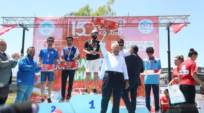 Kayseri Büyükşehir Belediye Başkanı Dr. Memduh Büyükkılıç, Büyükşehir Spor A.Ş. tarafından 'Türkiye Yüzyılının Kahramanları' teması ile düzenlenen 15 Temmuz Demokrasi ve Milli Birlik Günü Koşusu'nda dereceye giren sporculara ödüllerini verdi.