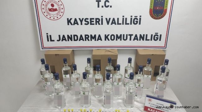 Kayseri İl Jandarma Komutanlığı ekiplerince yapılan çalışmalarda 17 litre kaçak alkol ele geçirildi.