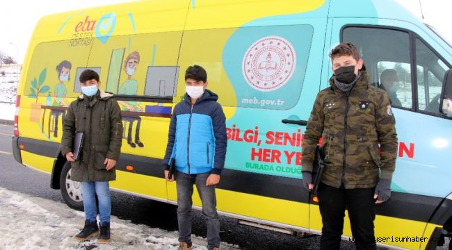 Milli Eğitim Bakanlığı tarafından Kayseri'ye gönderilen 3 Eğitim Bilişim Ağı (EBA) aracı uzaktan eğitim sürecinde çocukların sınıfı oldu.