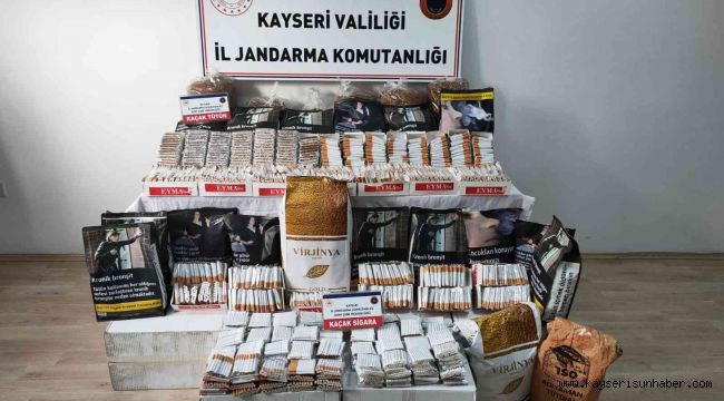 Kayseri Cumhuriyet Başsavcılığı koordinesi ile Kayseri İl Jandarma Komutanlığı ekipleri tarafından yapılan tütün ve sigara kaçakçılığı ile mücadele çalışmalarda Melikgazi ilçesinde 6 ikamette yapılan aramalar sonucunda 150 kilogram kıyılmış tütün, 33 bin 400 adet kaçak tütün dolu makaron ve bin 800 adet bandrol bulundu.