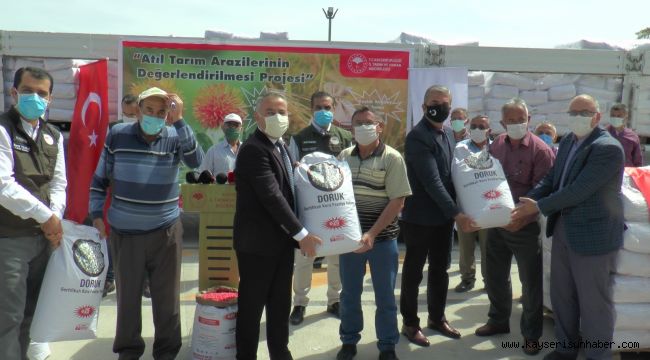Kayseri Tarım ve Orman İl Müdürlüğü tarafından 'Atıl Tarım Arazilerinin Değerlendirilmesi' projesi kapsamında 800 çiftçiye 50 ton kuru fasulye tohumu dağıtıldı.