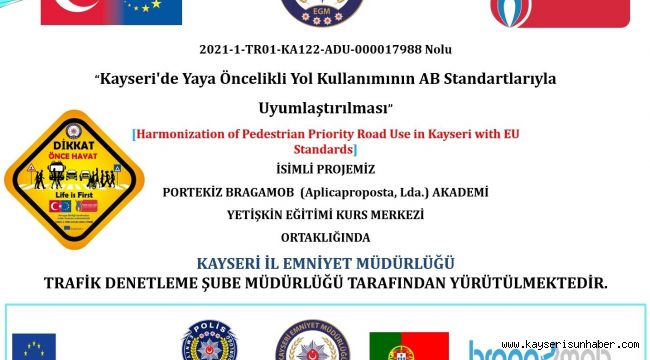 Dışişleri Bakanlığı, Avrupa Birliği Başkanlığı, Türkiye Ulusal Ajansına Erasmus+ Programı KA 122ADU (Yetişkin Eğitimi Personel Hareketliliği) kapsamında 2021'de planlanan ve onaylanan Önce Hayat (Life is First) isimli proje kapsamında AB standartlarında trafik eğitimi verilecek.