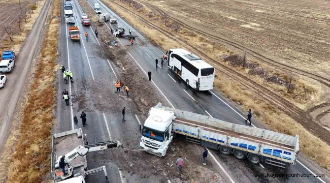 Kayseri'nin İncesu ilçesinde kamyonetin kontrolünü kaybederek refüje devrilmesinin ardından duran yolcu otobüsüne arkadan gelen tır çarptı. Kazada 1 kişi hayatını kaybederken, 1'i ağır 2 kişi yaralandı.