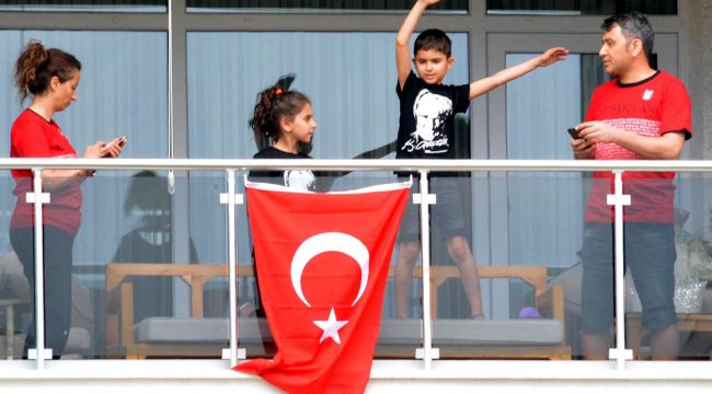 Kayseri’de çocuklar, 23 Nisan Ulusal Egemenlik ve Çocuk Bayramı'nı evlerinin balkonunda kutladı.