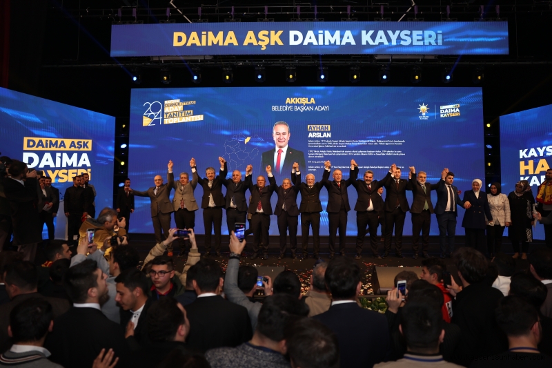AK Parti Kayseri Büyükşehir Belediye Başkan Adayı Memduh Büyükkılıç, AK Parti Melikgazi Belediye Başkan Adayı Mustafa Palancıoğlu, AK Parti Kocasinan Belediye Başkan Adayı Ahmet Çolakbayrakdar, AK Parti Talas Belediye Başkan Adayı Mustafa Yalçın, AK Parti Akkışla Belediye Başkan Adayı Ayhan Arslan, MHP Bünyan Belediye Başkan Adayı Selahattin Metin, AK Parti Develi Belediye Başkan Adayı Adem Şengül, AK Parti Felahiye Belediye Başkan Adayı Vural Coşkun, AK Parti Hacılar Belediye Başkan Adayı Bilal Özdoğan, AK Parti İncesu Belediye Başkan Adayı Mustafa İlmek, MHP Özvatan Belediye Başkan Adayı Halit Demir, MHP Pınarbaşı Belediye Başkan Adayı Menduh Uzunluoğlu, MHP Sarıoğlan Belediye Başkan Adayı Bekir Ayyıldırım, MHP Sarız Belediye Başkan Adayı Baki Bayrak, AK Parti Tomarza Belediye Başkan Adayı Davut Şahin, AK Parti Yahyalı Belediye Başkan Adayı Esat Öztürk, AK Parti Yeşilhisar Belediye Başkan Adayı Halit Taşyapan.