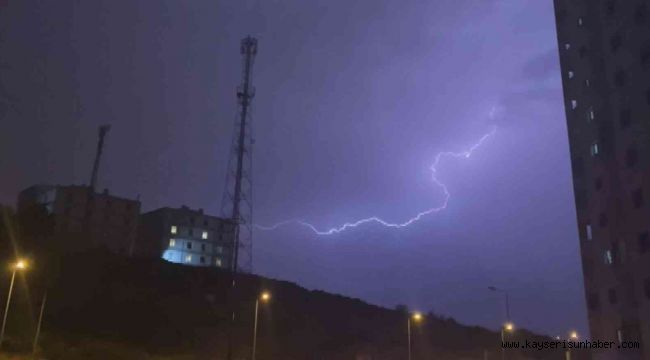 Kayseri'de akşam saatlerinden itibaren etkili olan gök gürültülü sağanak yağış ile birlikte çakan şimşekler görsel şölen oluşturdu.