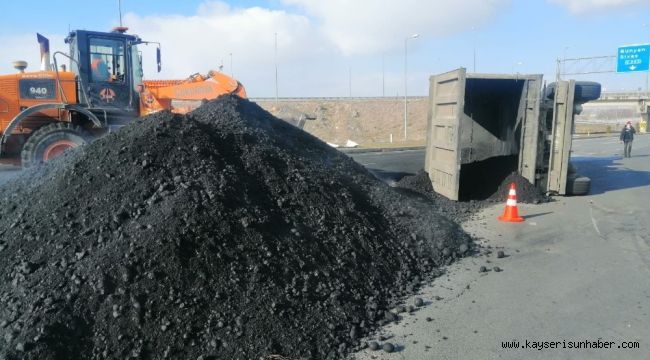 Edinilen bilgiye göre, Kayseri-Sivas Yolu Kuzey Çevre Yolu Kavşağı'nda meydana gelen kazada, A.F.'nin kullandığı 33 ASZ 23 plakalı kömür tozu yüklü tır, sürücüsünün direksiyon hakimiyetini kaybetmesi sonucu devrildi. Kazada tır sürücüsü A.F. yaralanırken, kömür tozları da yola saçıldı. A.F., ambulansla Erciyes Üniversitesi Tıp Fakültesi Hastanesi acil servisine kaldırılarak tedavi altına alındı. Polis ekipleri de kazanın meydana geldiği yolda güvenlik önlemi aldı. Kapanan yol, kömür tozlarının kaldırılmasının ardından yeniden trafiğe açıldı.