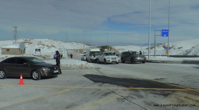 Türkiye'de kış turizminin önemli merkezlerinden olan Erciyes'e kaymaya giden kafilelere, jandarma ekipleri tarafından konaklama belgesi denetimi yapıldı.