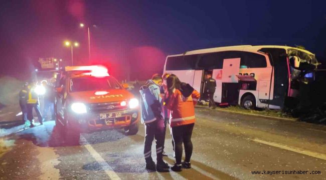 Kayseri'de kontrolden çıkan yolcu otobüsü aydınlatma direğine çarptı: 16 yaralı