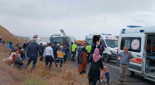 Kayseri'de midibüsün devrilmesi sonucu meydana gelen kazada 15 kişi yaralandı.