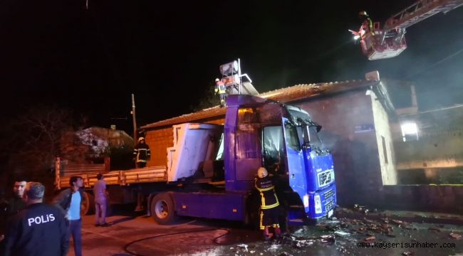Kayseri'de park halindeki tır yandı, alevler eve de sıçradı