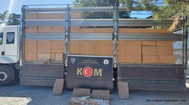 Kayseri'de polis ekipleri tarafından bir kamyonete düzenlenen operasyonda piyasa değeri 5 milyon TL olduğu değerlendirilen 3.5 milyon dal doldurulmuş makaron ele geçirildi.