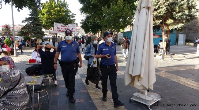 Geçtiğimiz günlerde korona virüs haritasında vaka sayısında en çok artış gösteren iller arasında yer alan Kayseri'de korona virüsle mücadele hız kesmeden devam ediyor. Kayseri İl Emniyet Müdürlüğü Asayiş Şube Müdürlüğü'ne bağlı önleyici ekipler tarafından kentin en işlek yerlerinden olan Cumhuriyet Meydanı'nda denetim yapıldı. Drone destekli denetimde maske ve mesafe kurallarına riayet etmeyen vatandaşlar tek tek uyarılarak maske takmaları sağlandı. Denetimlerin önümüzdeki günlerde de yapılacağı bildirildi.
