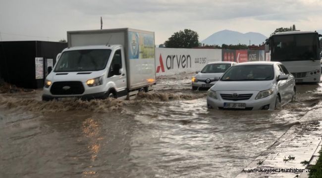 Kayseri'de sağanak yağışın etkili olmasının ardından caddelerde su baskınları meydana gelirken, bazı araçlar da yolda kaldı.