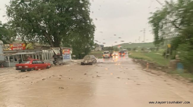 Öte yandan, Yahyalı ilçesinde de etkili olan sağanak hayatı olumsuz etkiledi. Derebağ Mahallesi'ne ulaşan yol, su taşkını nedeniyle trafiğe kapandı.
