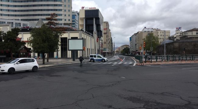Kayseri'de sokağa çıkma kısıtlamasının 1'inci gününde cadde ve sokaklar boş kaldı.