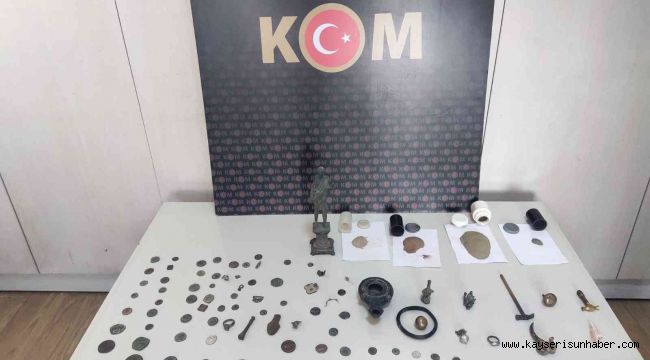 Kayseri'de polis ekiplerinin yaptığı çalışmalarda tarihi eser kaçakçılığı yaptığı tespit edilen bir kişi yakalandı.
