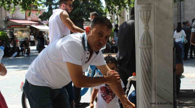 Tüm yurtta olduğu gibi Kayseri'de de hava sıcaklıkları etkisini gösteriyor. Termometrelerin 38 dereceyi gösterdiği kentte vatandaşlar sıcaktan kaçarak gölge yerlere sığındı. Sıcaktan bunalan vatandaşlardan bazıları elini yüzünü yıkarken, bazıları da ellerinde bulunan malzemeyi yelpaze gibi kullanarak serinlemeye çalıştı.