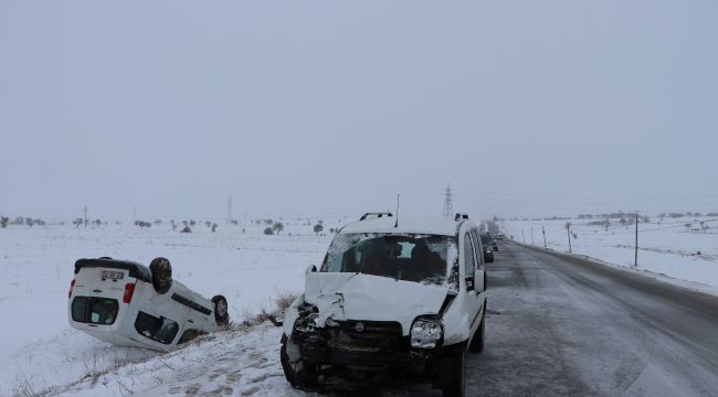 Kayseri''nin Talas ilçesinde 2 otomobilin kafa kafaya çarpışması sonucu 4 kişi yaralanırken, otomobillerden biri çarpışmanın etkisiyle takla attı.